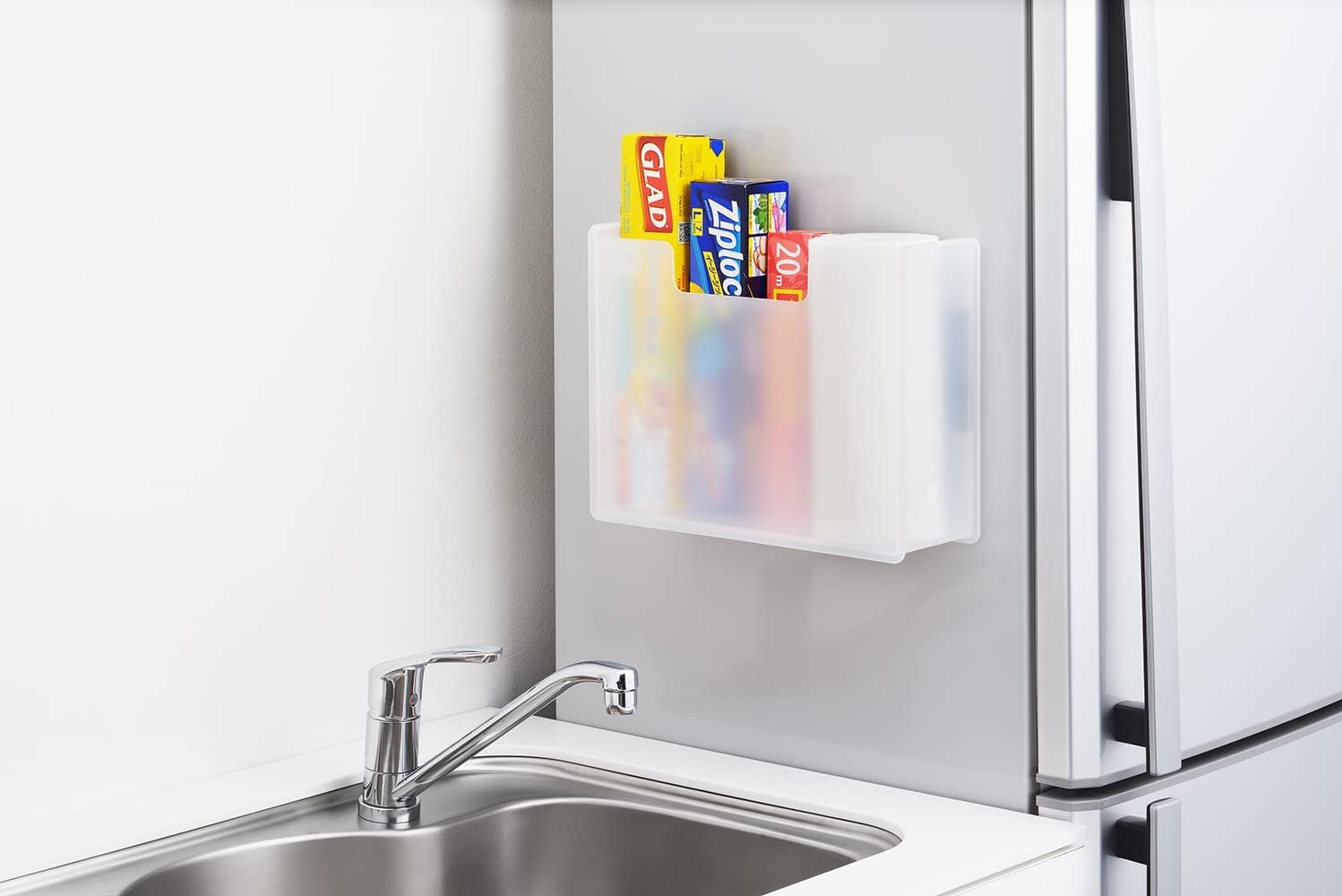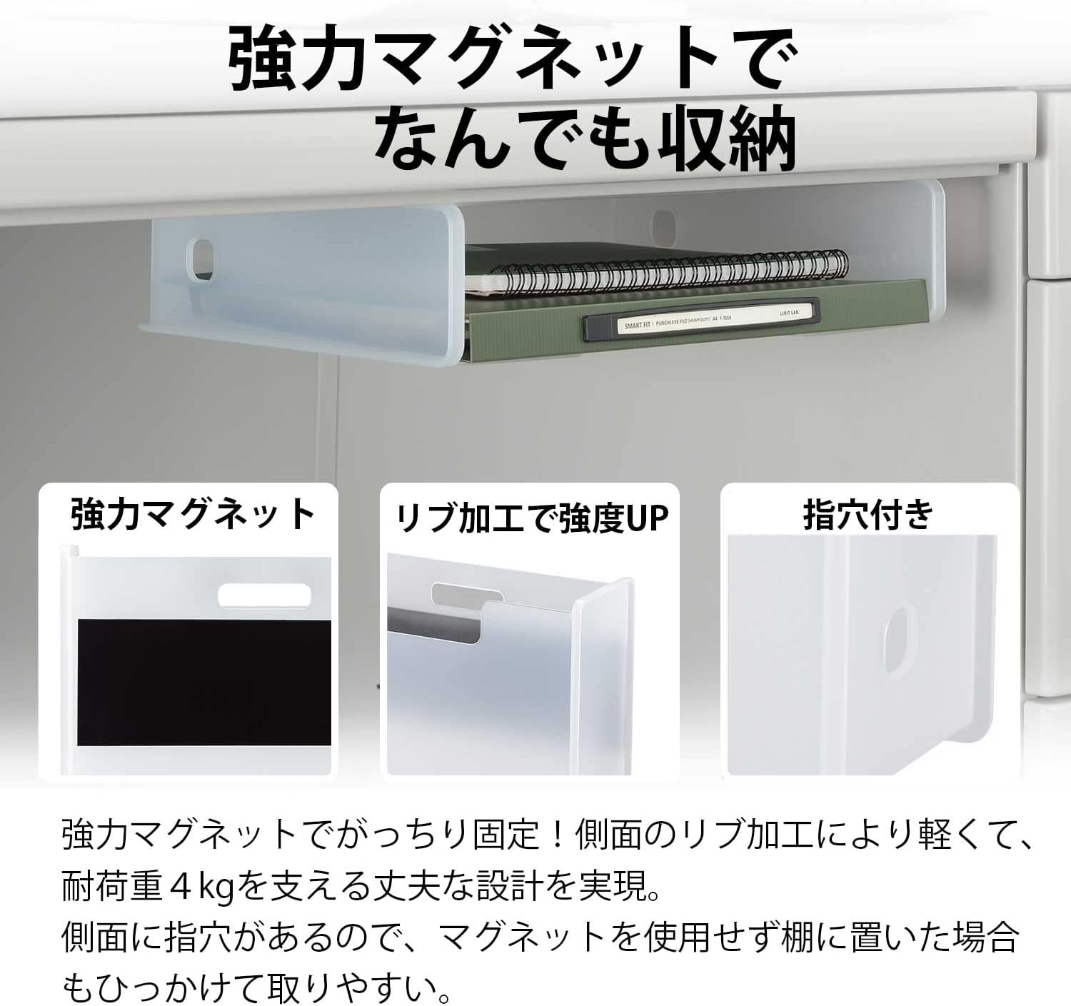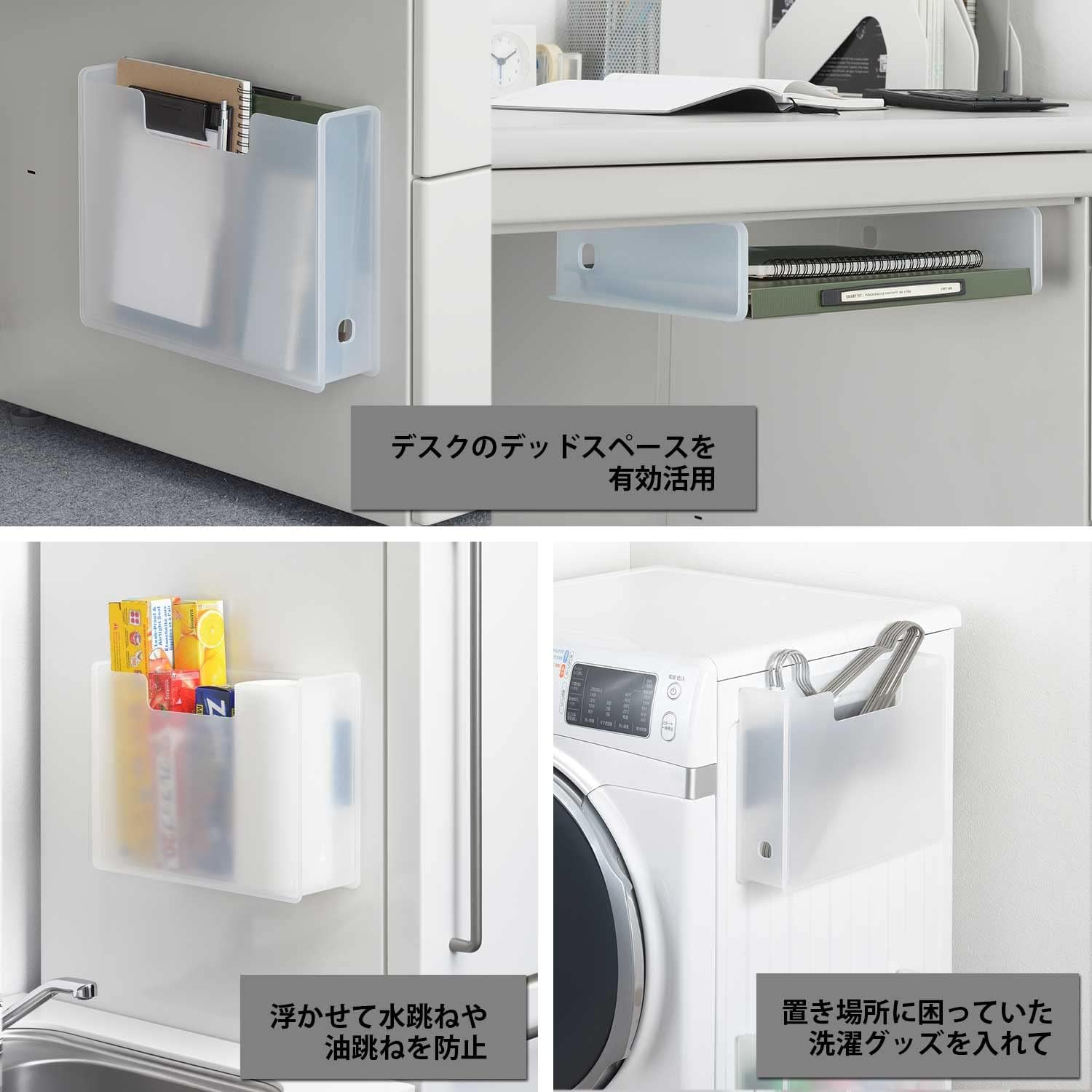 File box with strong magnet. Fits A4 size files neatly Can also be attached to a steel desk or whiteboard. Can be installed vertically or horizontally. Recommended for: Use it as a document holder or trash can in the office. Put it in your washing machine to place detergents, softeners, laundry nets. Put it on your fridge for wrapping or kitchen supplies, school paperwork. Put it on your front door to store your daily mask, folding umbrella, or everyday items. Material: Body: Polypropylene, Other: Magnet.
