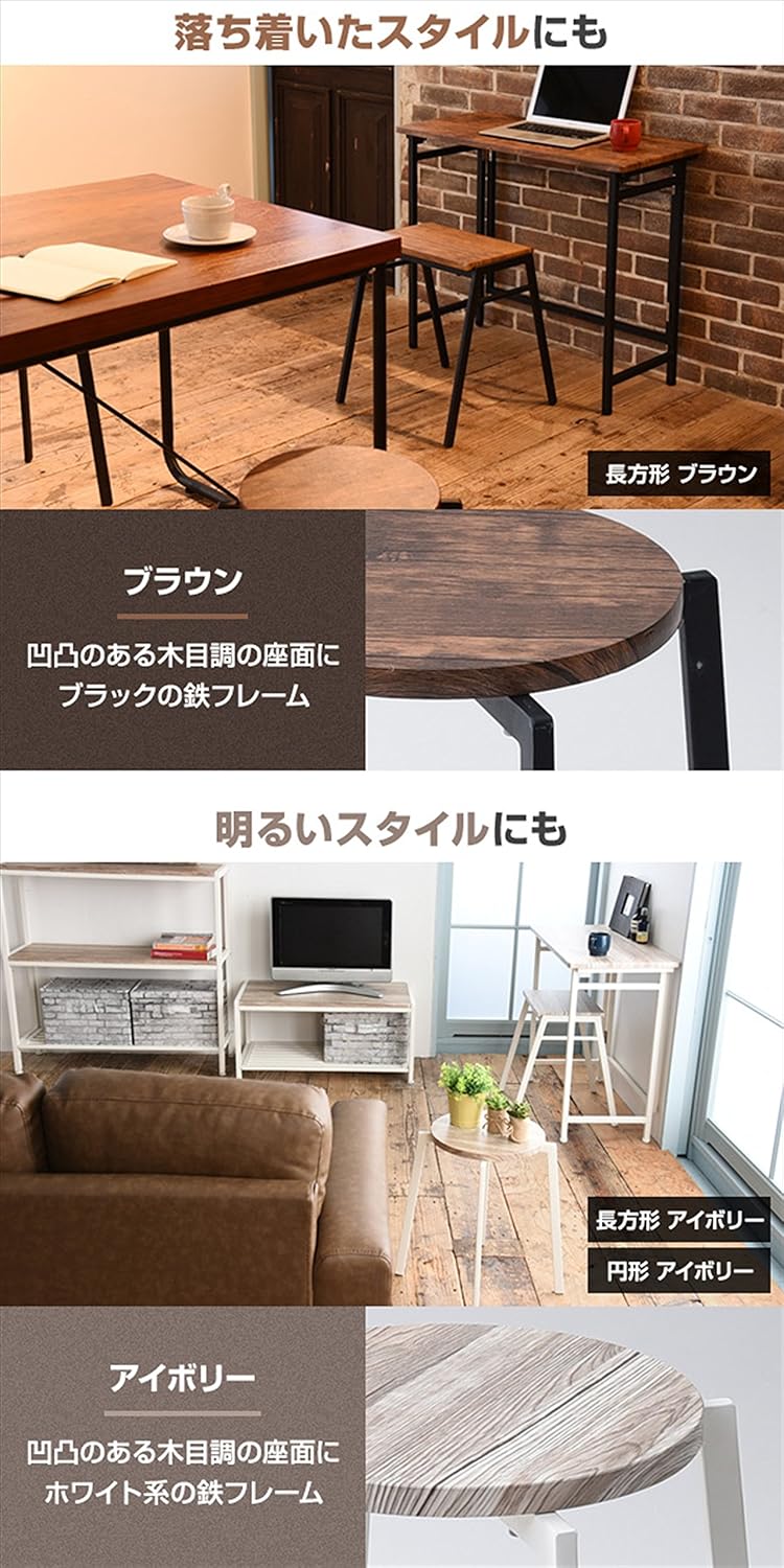 Set of 2 wooden top stools with a vintage look. Stackable (stackable) and can be stored in gaps for everyday use. The square iron frame creates an industrial feel. Not only can it be used as a chair, but also as a side table for interior decoration. Can be stacked and conveniently used as a sub-chair for guests.